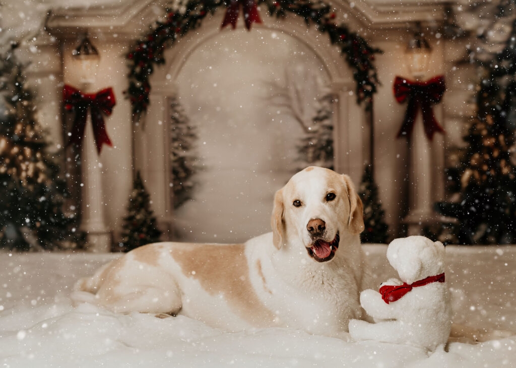Edles Weihnachts-Set in warmen Rot-, Gold- und Beigetönen mit stimmungsvoller, moody Lichtführung. Die Kulisse kombiniert klassische Eleganz mit festlichem Glanz – perfekt für luxuriöse Fine-Art Weihnachtsmini-Shootings. Ideal für Familienportraits, elegante Einzelaufnahmen oder besondere Geschenke zur Weihnachtszeit.